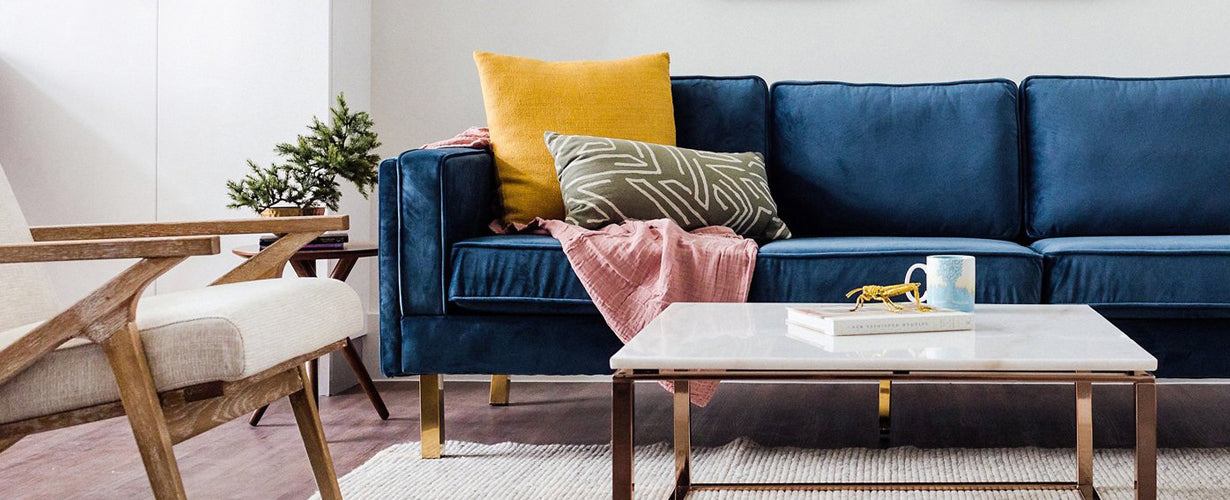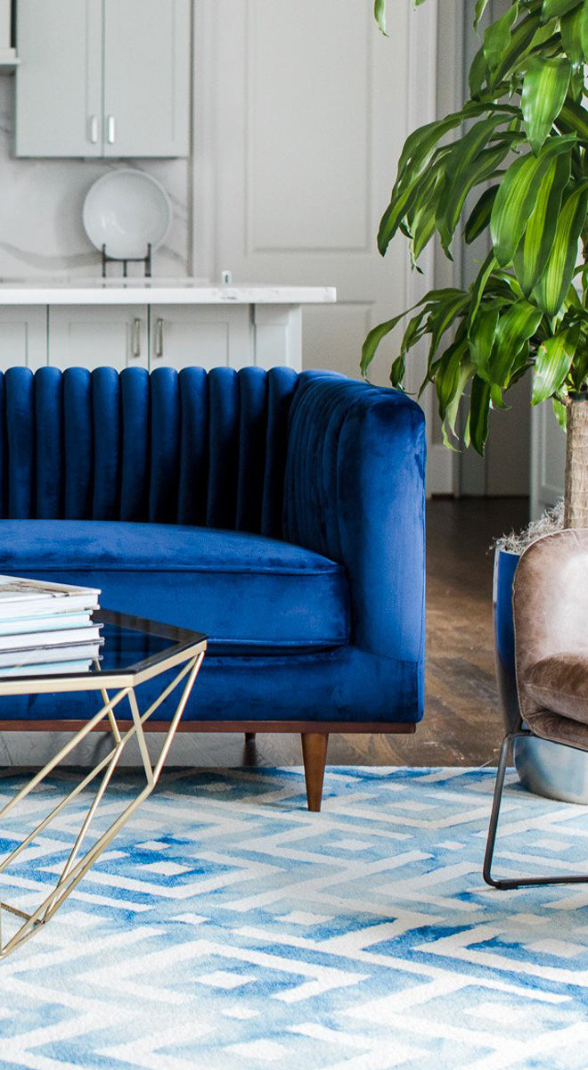 Blue vevelt sofa